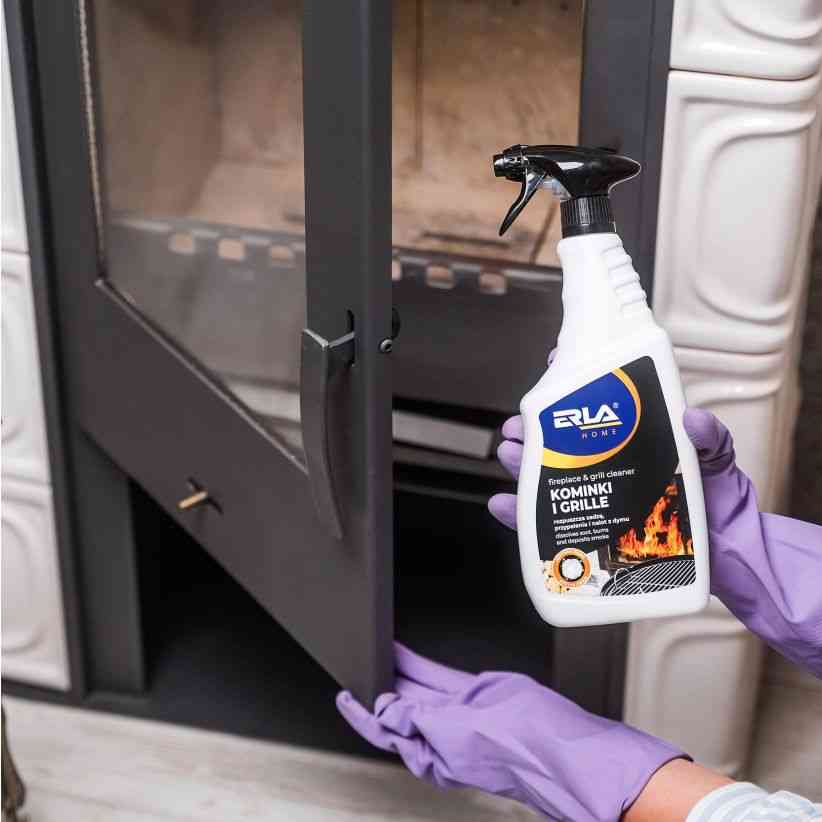 ERLA KOMINIKI I GRILLE 750 ml, un liquide puissant et efficace conçu pour nettoyer les vitres, les inserts de cheminée et les grilles. Il élimine efficacement les résidus brûlés, les dépôts graisseux, la suie et les traces de fumée. Sa formule moussante active recouvre parfaitement la surface sale, pénétrant et dissolvant les contaminants, permettant un retrait facile sans frotter.